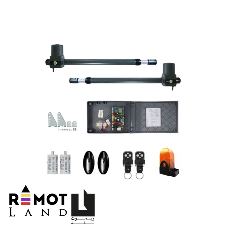 | اقلام همراه | تکیه گاه های بازوها و متعلقات آن , چراغ سر درب (فلاشر) ۲۴ ولت ,۲ عدد ریموت ,خلاص کن کلیدی ,یک جفت فتوسل, مرکز کنترلر و باکس آن |