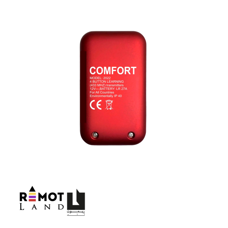 ریموت کامفورت 2022 محصول گلدن گیت, این ریموت جهت کددهی با انواع درب های اتوماتیک کرکره ای و جک های پارکینگی می باشد. همچنین این ریموت قابلیت تعریف با انواع گیرنده هایی که قابلیت کددهی با ریموت 433 را دارند را نیز داراست. ریموت جک کامفورت 2022 ریموتی با برد 70مترواز یک باتری قلمی A27 تغذیه میکند فرکانس کاری ریموت 433 مگاهرتز میباشد.