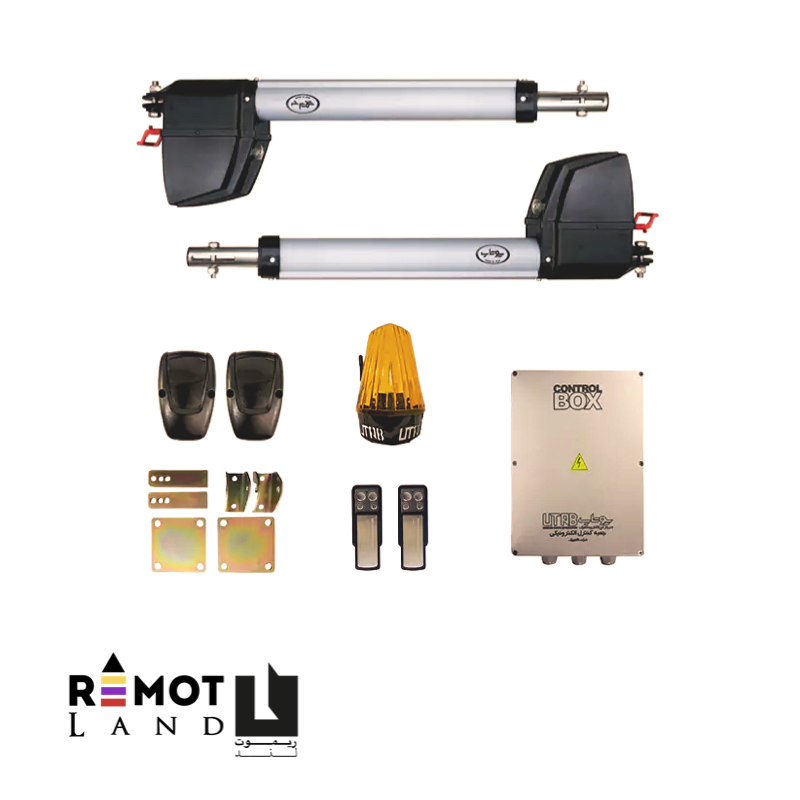 جک برقی یوتاب شامل : دو عدد بازو، برد و مدار فرمان جک یوتاب، 2 عدد ریموت، فالشر، یک جفت چشمی، یراق آلات نصب می باشد.